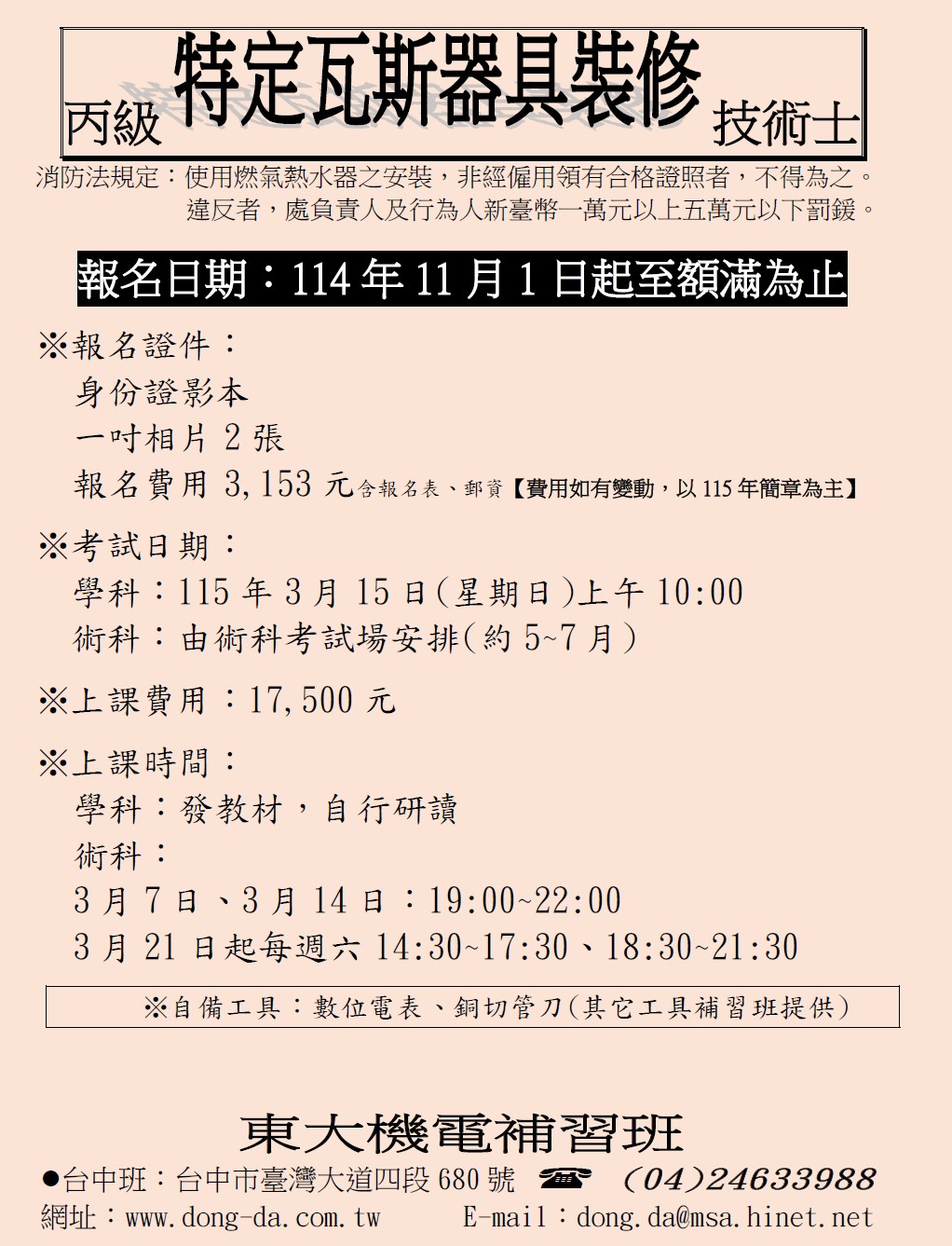 115年丙級特定瓦斯器具裝修技術士(全國)